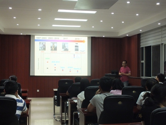 胡文涛老师介绍了学院于1987年购买第一台透射电镜H800,2003年购买了第二台的JEM-2010,以及2016年新购置的第三台Titan ETEM G2透射电镜更新过程。重点介绍了Titan ETEM G2的分辨率、气氛和附件的主要特征。随后胡老师又向大家介绍了学院于2017年订购的Themis Z和Talos两台透射电镜,由于Themis Z和Talos使用电脑系统操作,既方便使用又减小了手动操作误差对透射电镜的损坏,因此学生可以经过培训之后可独立操作。从H-800到Themis Z和Talos,从无到有,从有到精,设备的不断更新使得研究人员能够获取更加准确的实验数据,为各研究课题的改进提供技术保障,有力地促进了成人在线