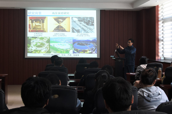 赵智胜教授首先以“压力产生的新型亚稳材料”为题引入了压力下的物质世界这一研究内容,讲解了通过改变压力的强度,可以实现在超硬材料中形成硬度和韧性均高达天然金刚石2倍的超细纳米孪晶组织。同时阐述了通过改变压力的作用,可以实现新型亚稳材料合成的科研前景。随后,他向同学们系统的介绍了田永君院士科研团队近期开展的相关课题研究进展。从物质结构到关键性技术革新,他进行了深入浅出的讲解,强调了超硬亚稳材料在相关学科领域以及生产生活中的突出重要性。最后,他分享了自身的科研学习经历,强调了科研之路要始终保持信念坚定、勤劳认真、持之以恒、刨根问底、诚实守信的态度,推荐了不同的科研方法,解答了同学们有关专业兴趣、学历、就业等方面的问题,并鼓励大家认真学习基础知识,不轻易向困难低头,勇于尝试,敢于挑战,为将来进行科学研究做好准备。