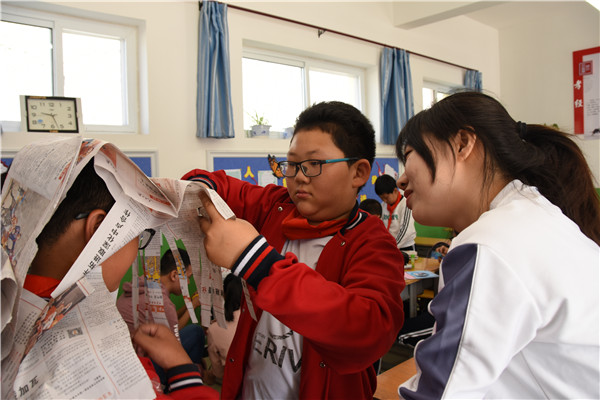| 毕业班党员带领四年级学生利用废报纸制作创意时装 |