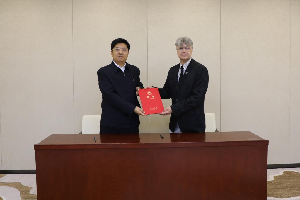 赵丁选为索尔达托夫教授颁发聘书