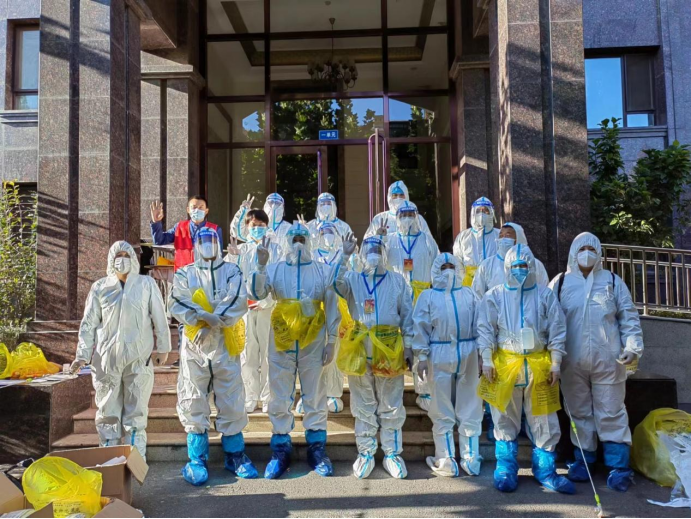 他们穿上防护服、戴上防护面罩、换上红马甲,奔忙在小区卡口、核酸采样点、封控楼宇,化身“守门员”“扫码员”“搬运工”“巡逻员”“引导员”,在各自岗位上践行着成人在线