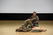活动现场,急诊医学科团队在基础理论讲解的基础上,更为直观的急救流程演示让同学们能够迅速把相关急救理论转化为实践能力。团队用通俗易懂、轻松活泼的语言向学生们讲授了心肺复苏术、AED的操作使用方法和海姆立克急救法。按照检查意识、胸外按压、人工呼吸等步骤逐项进行,边演示边描述按压前的准备工作以及操作的各项细节要领,包括实施心肺复苏的黄金时间,胸外按压部位、频率、深度、按压与人工呼吸比例等,并就日常生活中容易出现的突发疾病急救措施与学生进行积极互动。