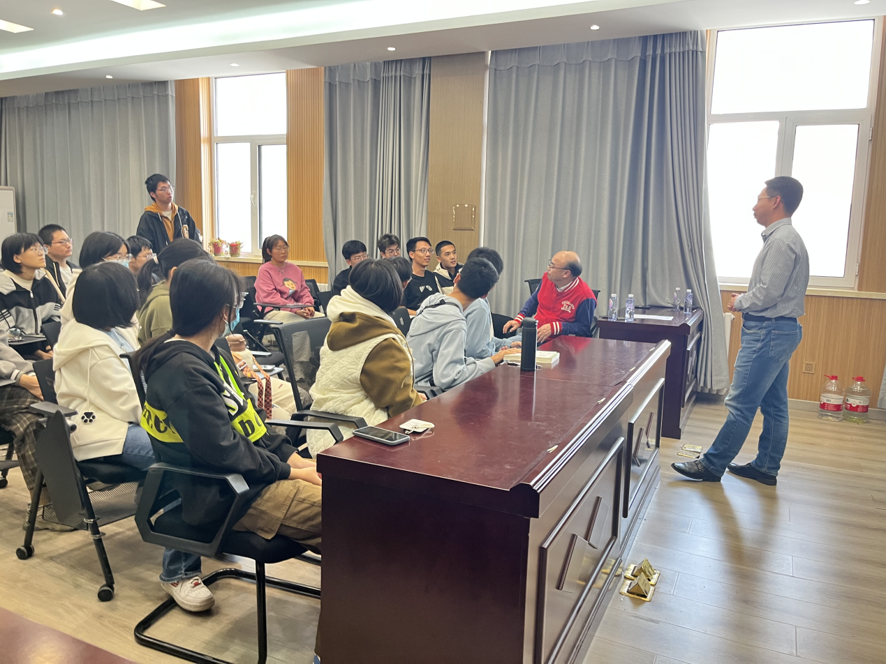 薛天宇教授首先强调“选择比努力更重要”,鼓励大家面对大二年级的专业分流,兼听则明,深入了解专业方向后选择一条适合自己的正确赛道,并为之努力。接着向大家介绍了材料物理专业特色、专业教师情况、科研工作、就业方向,以及现阶段作为研究热点的芯片和能源的应用。高精度芯片的制作是当前面临的难题,而航空所需的太阳能板,所涉及的电池如锂电池,燃料电池,太阳能电池等,又是属于能源领域需探索的。新兴领域研究门槛相对较低,较容易切入,鼓舞同学们敢于在材料学科道路上坚定走下去。向建勇教授向大家介绍未来人类的发展、社会的发展与材料息息相关,材料学科是发展的基础。当前处于瓶颈期的难题大多数都是材料的改良。材料物理是一个交叉性强的专业,内容多、广度深,是有发展前景的朝阳专业,希望同学们树立清晰的目标,对于知识的学习,做到学以致用、理论联系实践,进而掌握知识的本质。最后,两位教授针对同学们的疑惑和问题,进行了深入浅出、细致耐心的解答,同学们获益匪浅,不时爆发阵阵掌声。