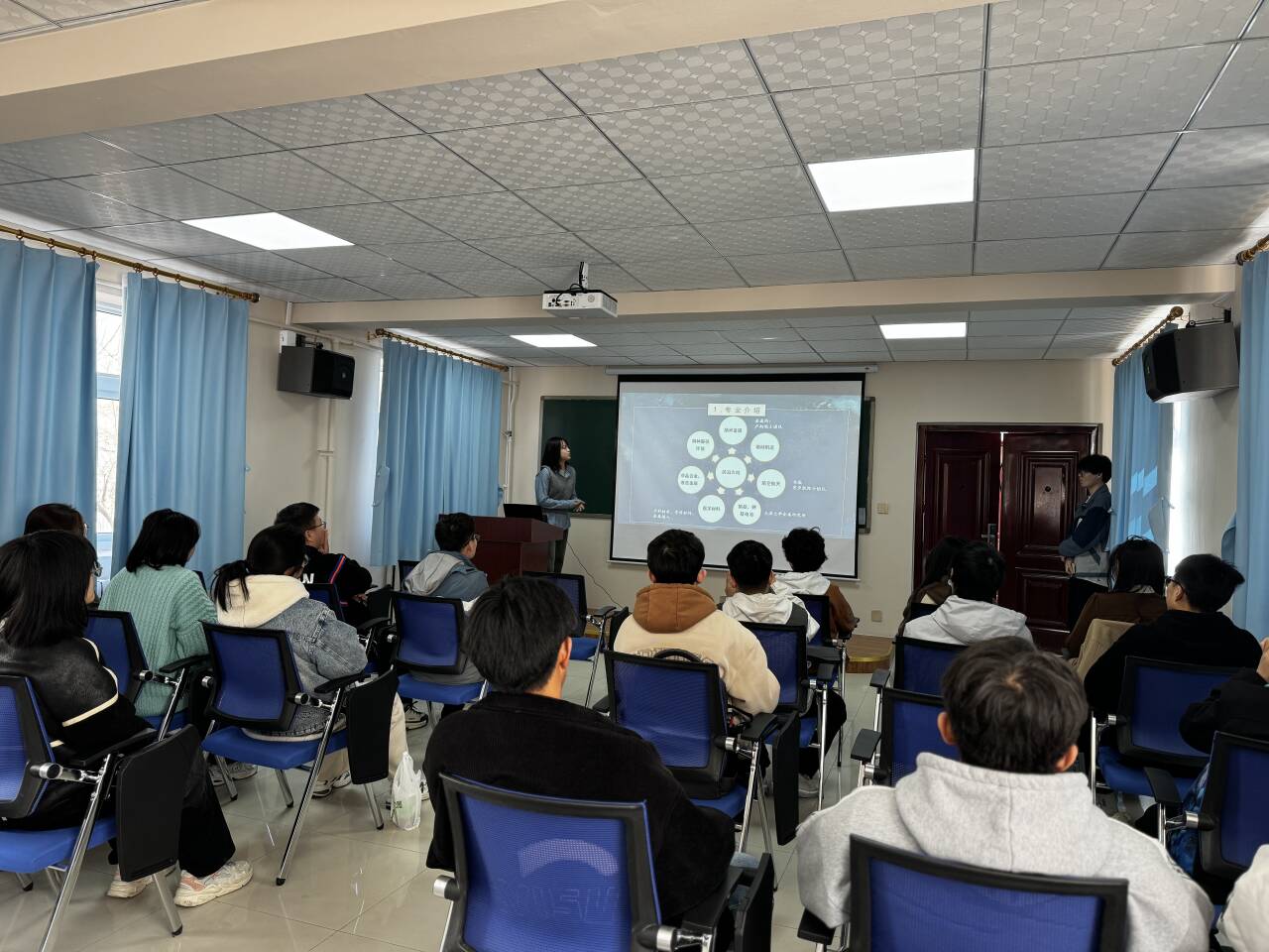 宁榴莲同学从专业介绍、科研项目、学科竞赛、全面发展四个方面结合自身经历讲述对金属材料工程的落地应用与前沿研究的认知,分享开展科研项目与准备学科竞赛的实用方法,建议同学们以专业学习为基础,科研竞赛为延伸,在志愿实践活动中全面发展。她鼓励同学们在大学生活中,要主动争取机会和制造机会,多尝试、多参与、多挑战。