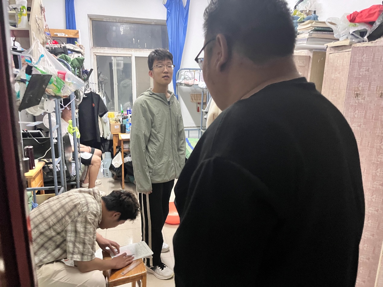 王亦晨带领全体辅导员分三组深入各组团学生寝室,对学生所处环境安全隐患和卫生一并做了详细检查。查寝人员提醒所有同学要时刻注意用电安全,明确要求大家不得使用违规电器,关注用电器线路,确保电器在不用时能够及时关闭,切断安全隐患;同时指出楼厅公共区域不得堆积物品,垃圾及时下楼。本次活动持续到次日凌晨1:30,充分体现了老师们对学生的关爱和学校管理规定的重视。