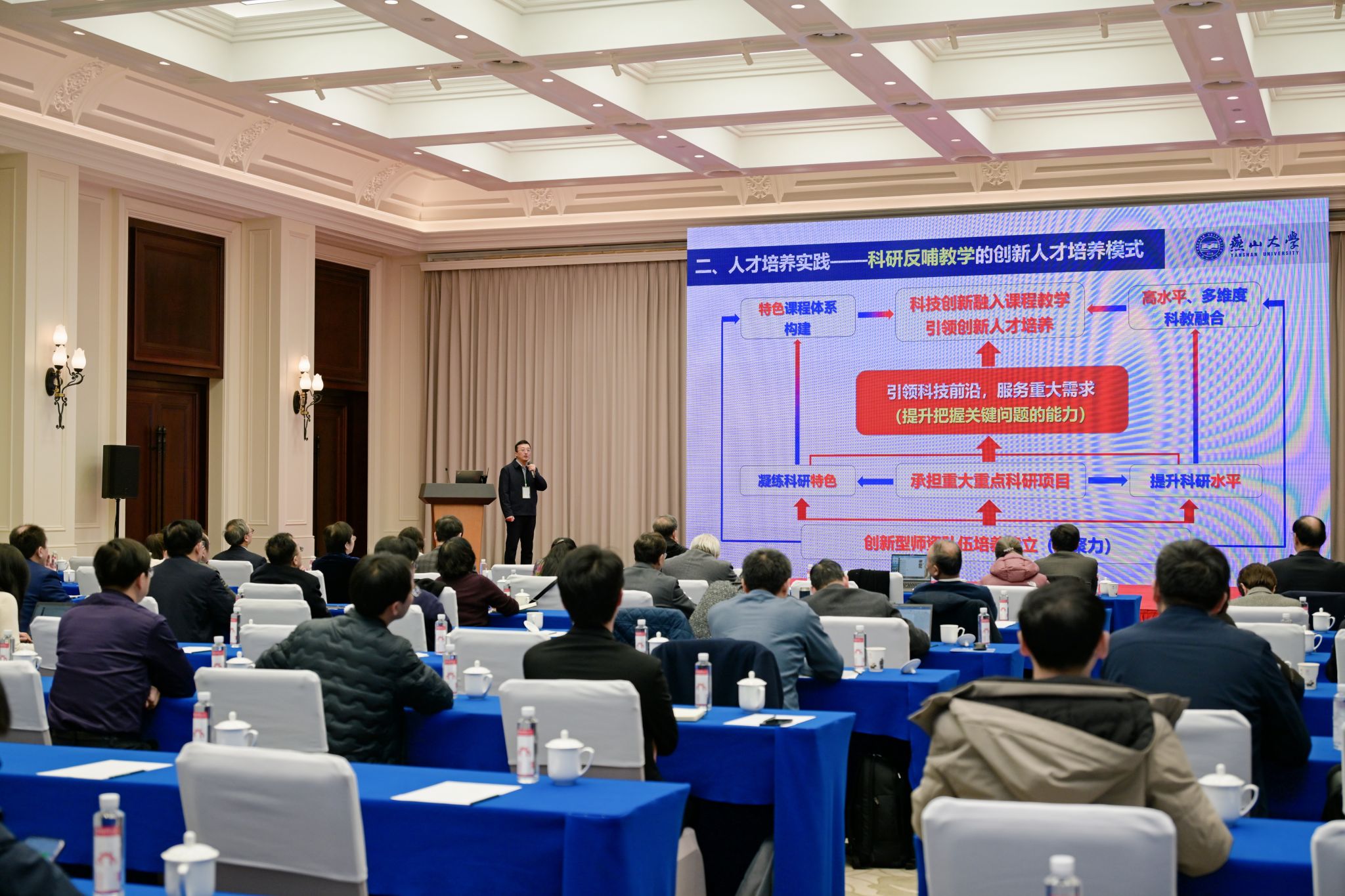 此次会议以“深入贯彻落实全国教育大会精神,推进AI时代材料专业高质量发展”为主题。会上,武汉理工大学、四川大学等高校代表重点围绕材料类专业学科建设、课程教学设计创新、培养模式重构、创新人才培养等方面交流经验、畅谈未来,从不同视角为我国材料类新工科专业高质量发展提供了宝贵经验启示与实践借鉴。张新宇结合我校材料学科发展历程,作了题为“科研反哺教学助力创新人才培养的实践探索”的专题报告,分享了我校材料类专业通过科研反哺教学助力创新人才培养的实践探索和经验做法。他表示,国家科技自立自强、高质量发展对材料类创新人才有着巨大需求。我校材料类专业人才培养始终秉持“科研反哺教学,培养新时代创新人才”的培养理念,探索搭建“厚基础、重实践、强能力、突特色”的理论和实践课程体系、构建“目标引领,创新驱动,赋能科技成果促育人”的创新人才培养机制,将科技创新融入课程教学,全面落实立德树人根本任务,引领材料创新人才培养。