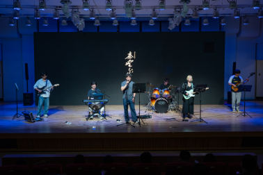 乐队表演《秦皇岛-后来》,用激昂的音乐和深情的演唱,表达了对港城和母校的深深眷恋。