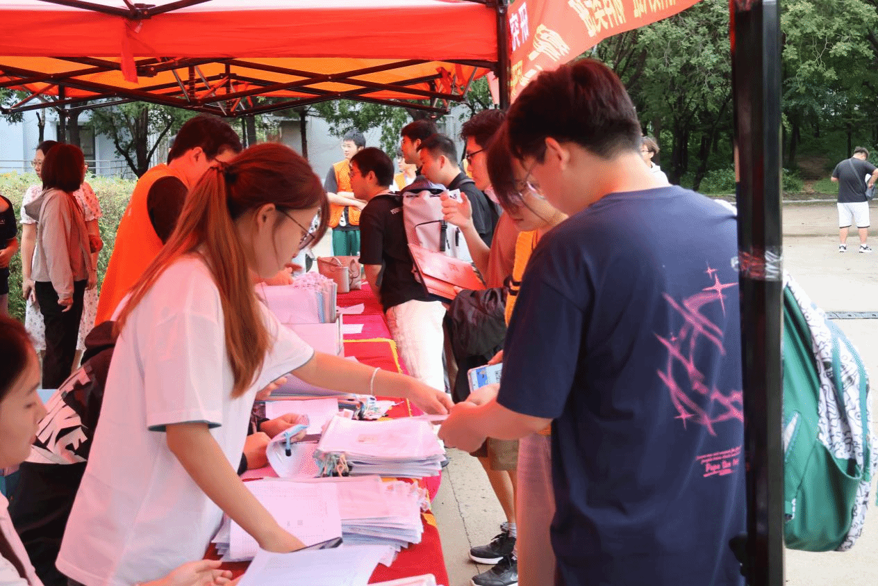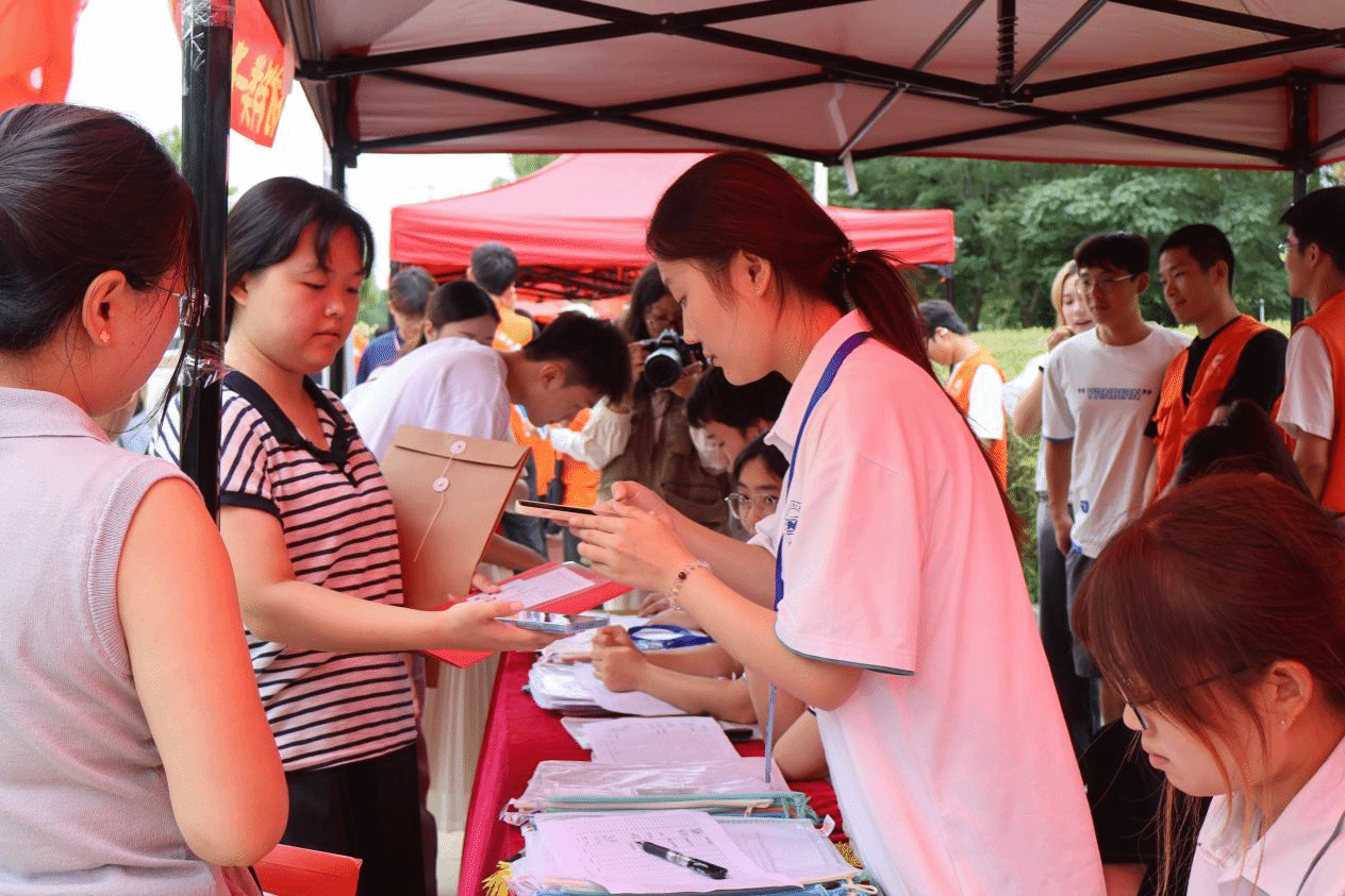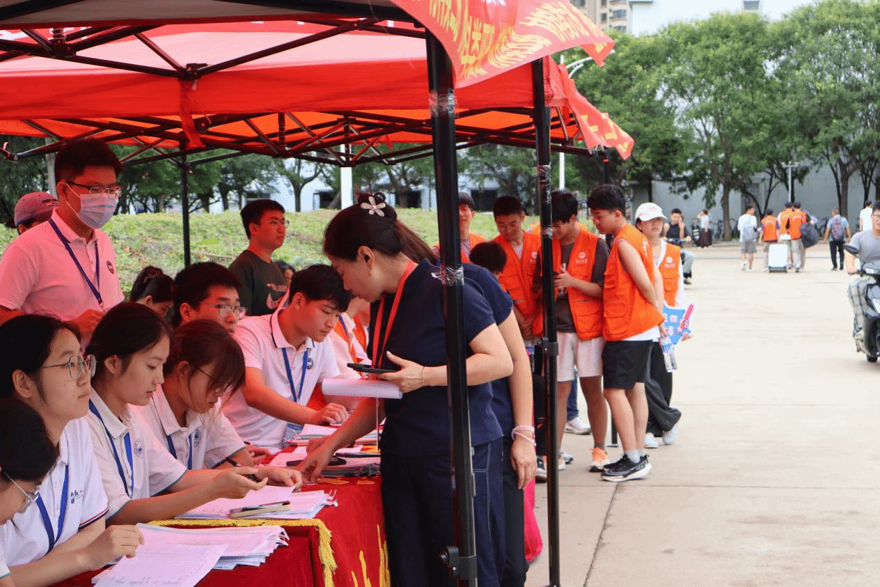 清晨伊始,学院迎新点已整装待发:醒目的指引牌清晰引路,志愿者们、工作人员、老师们身着统一服装,主动接过新生的行李,耐心解答“报到流程”“宿舍位置”“校园设施”等疑问,从信息登记、材料核验到校园卡发放,每一个环节都有条不紊。