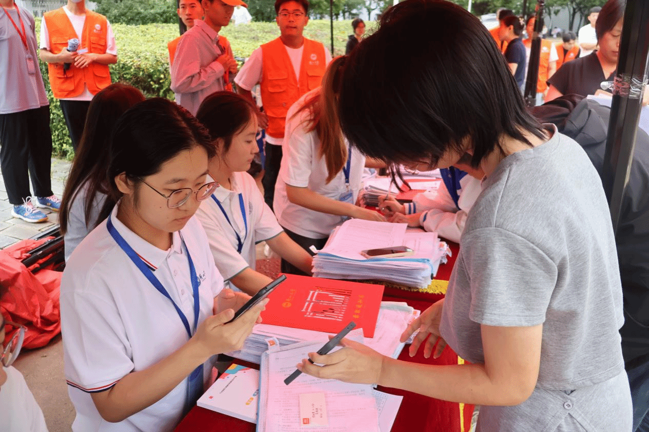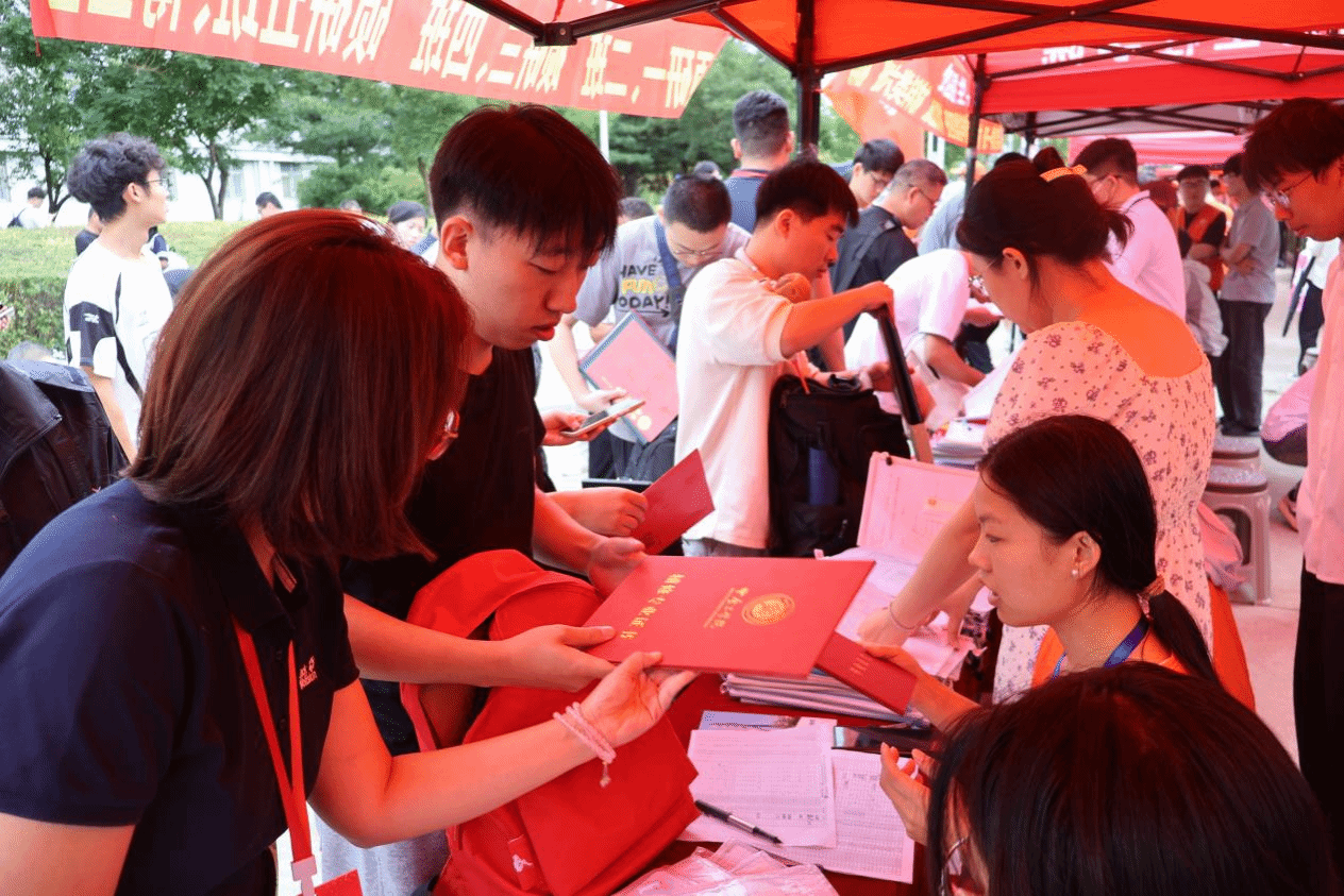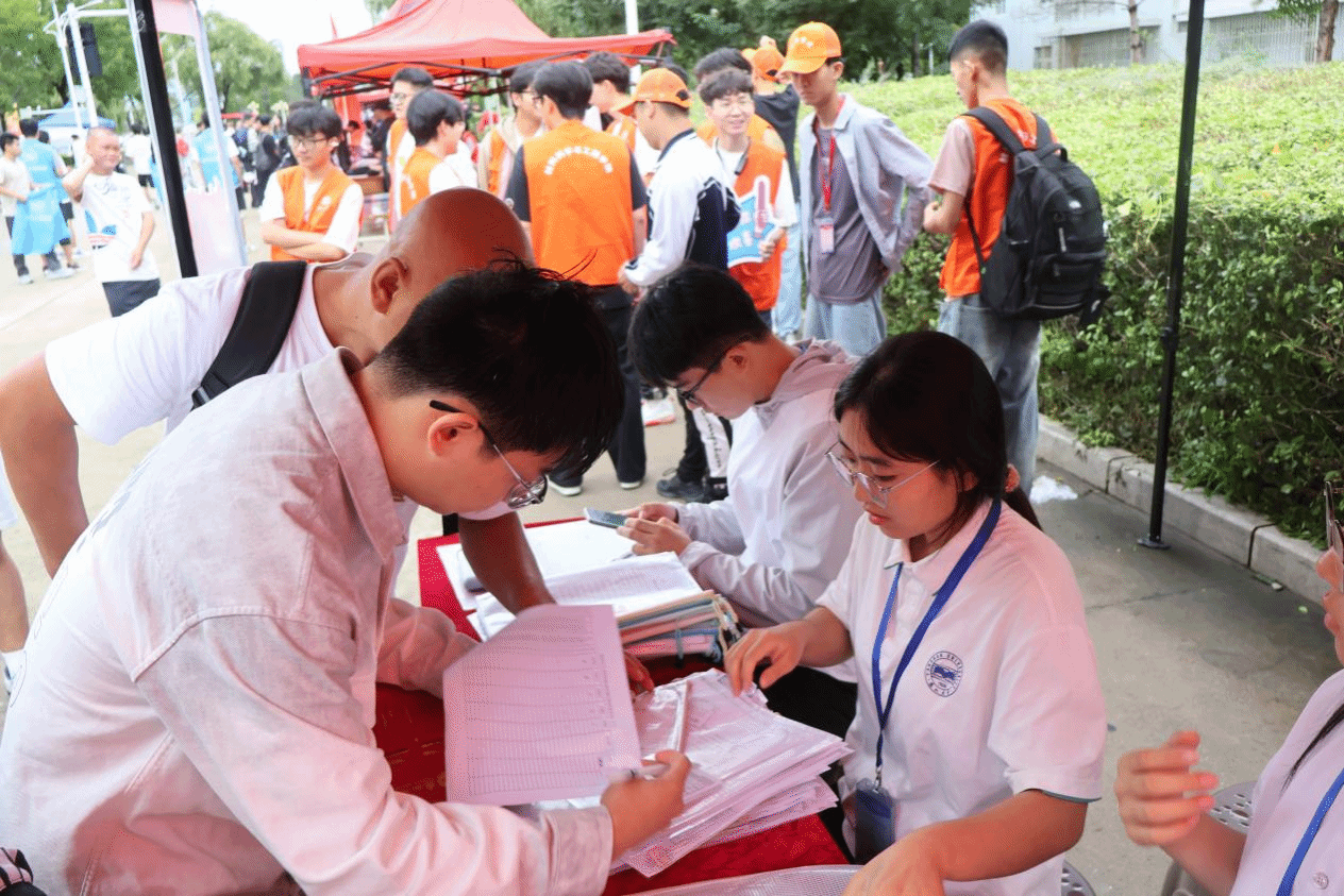 清晨伊始,学院迎新点已整装待发:醒目的指引牌清晰引路,志愿者们、工作人员、老师们身着统一服装,主动接过新生的行李,耐心解答“报到流程”“宿舍位置”“校园设施”等疑问,从信息登记、材料核验到校园卡发放,每一个环节都有条不紊。
