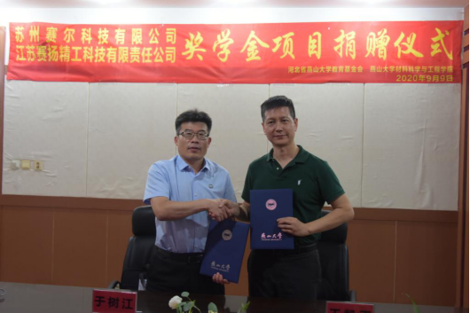 9月9日下午4:30,江苏赛扬精工科技有限责任公司、苏州赛尔科技有限公司奖学金项目捐赠仪式于材料A馆325室举行。成人在线