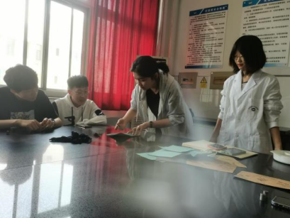 往年赛绩。随后讲解了比赛的操作流程,其中包括机器预磨倒角、手工预磨试样、试样抛光、用硝酸酒精侵蚀试样、显微镜观察组织和试样表面五部分。实践出真知,磨砺长才干,朋辈培训师张婷婷以手工预磨试样作为示范向听众展示金相在操作中的注意事项。在热烈的气氛感染下,同学们跃跃欲试,开始动手预磨试样。两位主讲人不时指导同学们的操作,纠正不规范的动作,让其“把劲用在钢刃上”。在同学们充分熟悉实践操作之后,两位主讲人详细介绍金相比赛的技术问题、训练时间、机械的操作要求等,同时鼓励同学们刻苦练习磨练技艺,积极与指导老师沟通交流,并希望同学们再创佳绩。