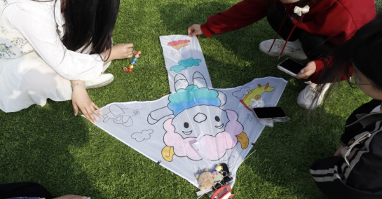 在“画风筝”环节中,同学们纷纷展现出自己的想象力和绘画功底。他们或是认真构思风筝的图案,或是猜测同伴笔下所描绘的形象,亦或是写下对未来的美好愿景。在欢声笑语中,一支支色彩斑斓、充满创意的风筝在同学们的巧手中诞生,它们不仅承载着同学们的创意与活力,也留下了珍贵的合影回忆。