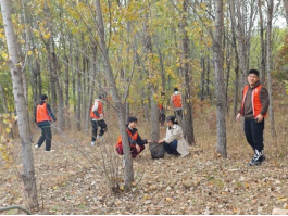 在青年志愿者协会工作人员的带领下,同学们穿戴好防护用具,热火朝天地投入了对塔山公园内垃圾的清理行动。志愿者们分工明确,配合默契,对捡拾到的垃圾按可回收物、有害垃圾和其他垃圾进行分类并投放到了指定垃圾箱。劳动间隙,同学们轻轻捡起一片片落叶,在享受劳动快乐的同时,也用手中的秋叶留住了秋天的韵味。