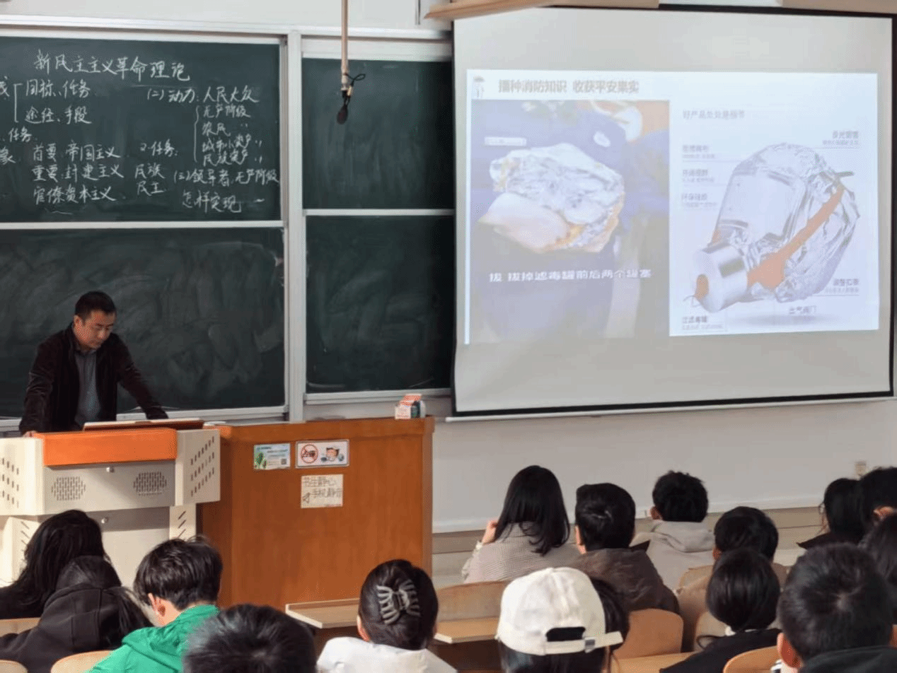 王伟旭通过近年高校火灾统计数据分享着重阐释消防安全教育“四个核心能力”培养的重要性。结合违规使用大功率电器、电动车充电自燃等典型案例,配合震撼的现场影像资料,系统剖析了校园火灾成因及防范要点。重点围绕如何消除火灾隐患和火灾逃生的四大误区、灭火器材的使用、火场应急逃生知识和疏散技巧等方面进行讲授,特别纠正了“盲目跳窗”等常见逃生误区。生动直观的教学方式与详实的数据支撑,使在场学生深刻认识到“预防为主,防消结合”的重要性,以及养成安全用电习惯和从源头上预防火灾事故的发生的必要性。