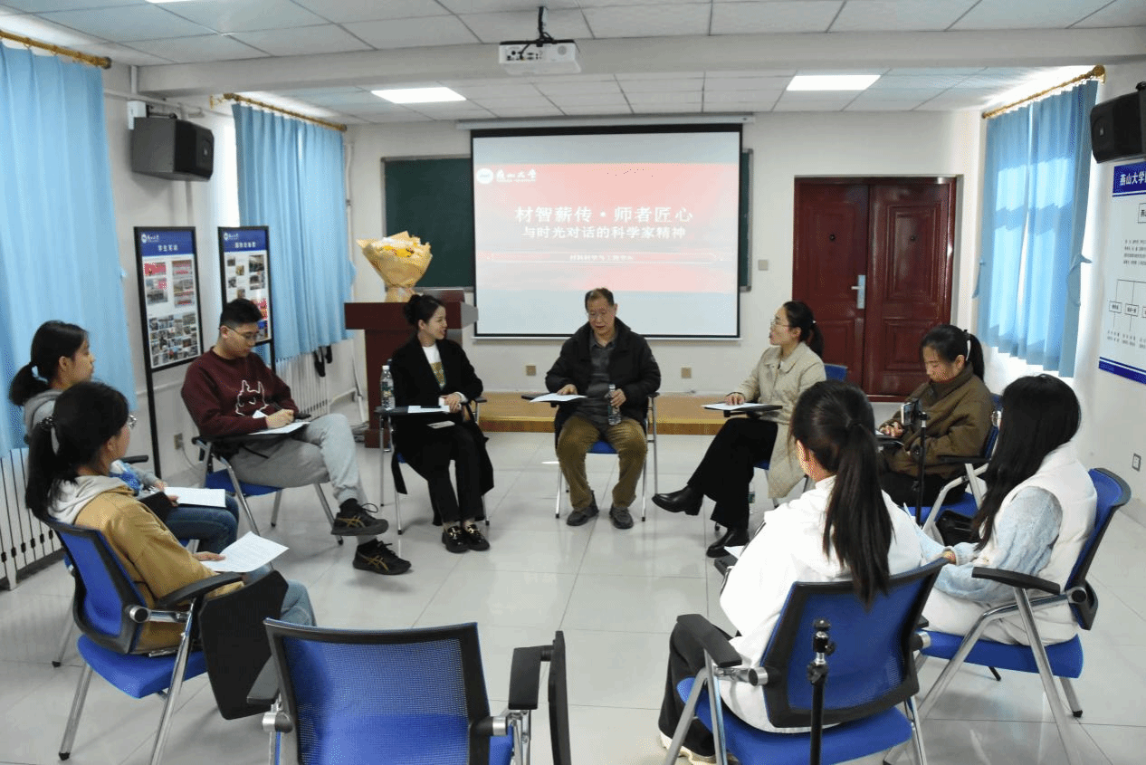 于4月22日下午在“一站式”学生社区工作站开展了一场“材智薪传·师者匠心-与时光对话的科学家精神”的访谈活动。这场跨越代际的学术对话,不仅是对科学家精神的深情礼赞,更是学院为青年学子搭建的精神传承“特快专列”。当时代呼唤科技创新的号角愈发嘹亮,我们追问:该如何让科学家精神突破实验室的边界,在年轻血脉中生根?这场对话,正是学院给出的铿锵答案。