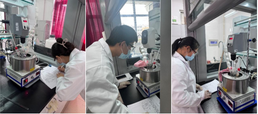 比赛过程中,选手们沉着冷静、分工明确,从称量药品、控制反应条件到产物后处理,每一步都严谨细致,展现了扎实的专业功底和良好的实验素养。面对实验中出现的突发状况,团队成员密切配合,灵活调整方案,充分体现了工程实践中的应变能力与创新思维。