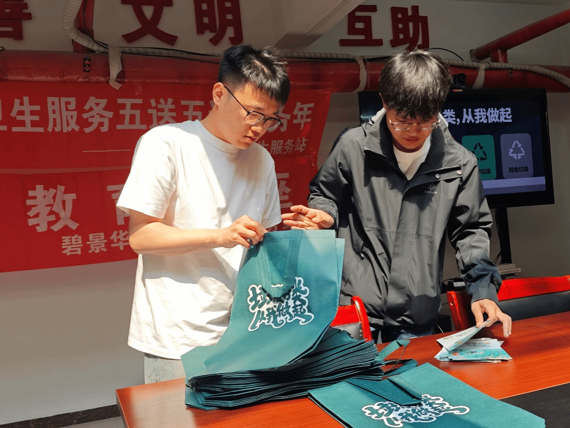 毕业生党员在辅导员王妍带领下,来到碧景华庭小区,与秦皇岛经济技术开发区自然家园社区居民委员会共同举办“党建引领迎端午,粽叶飘香传文明”主题活动。