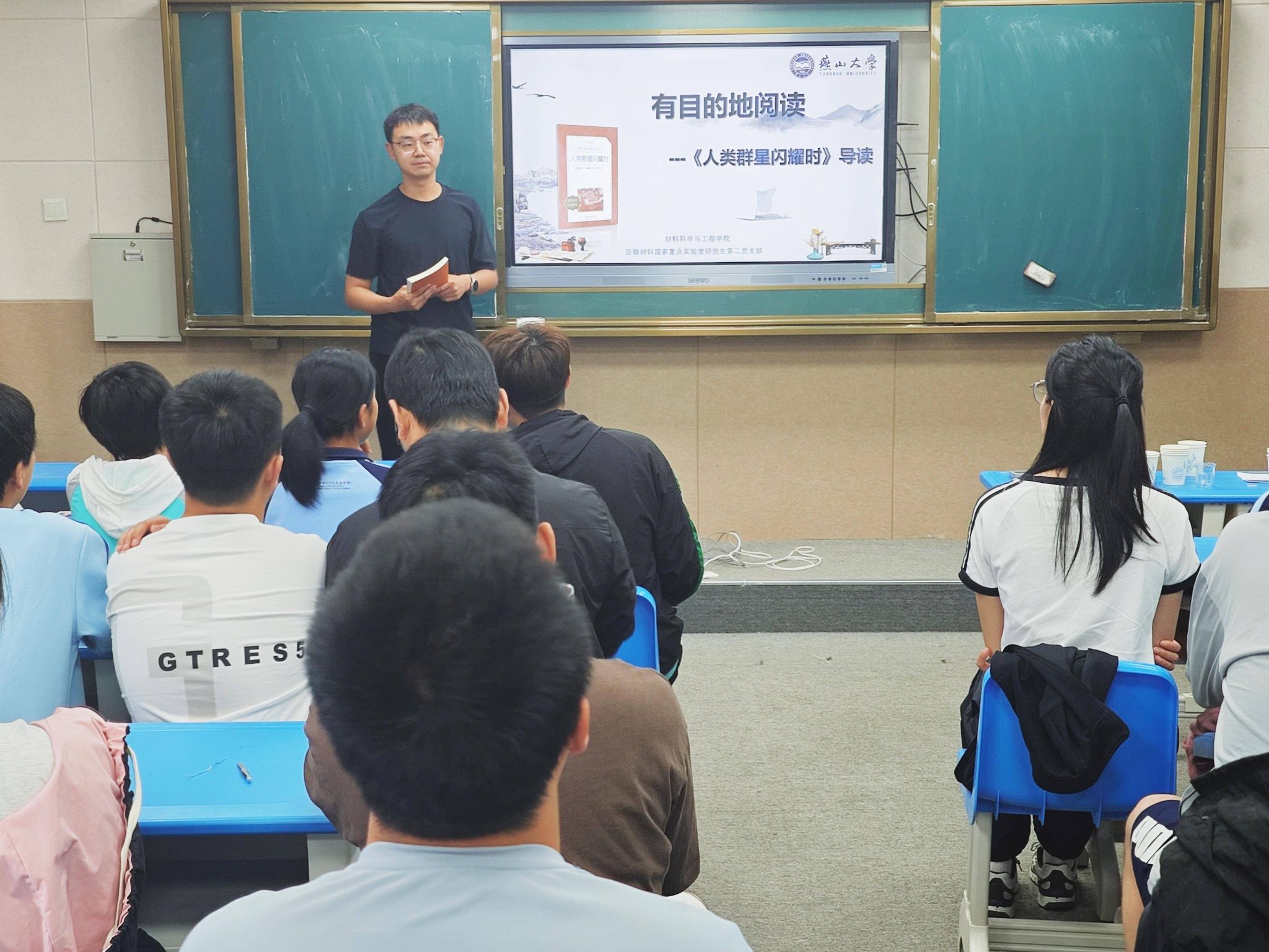 在读书交流活动中,党支部成员李鹏耀围绕经典书目《人类群星闪耀时》作主题分享,从阅读经典、阅读感悟,带领大家重温历史经典,感悟书中智慧,共同领略阅读的魅力。随后,支部成员为同学们赠送精心挑选的《钱学森传》《恰同学少年》《世界未解之谜》等经典书籍。这些书籍涵盖科学精神、青春理想和探索求知三大主题,既传承红色基因,又启迪创新思维,受到了孩子们热烈的追捧。