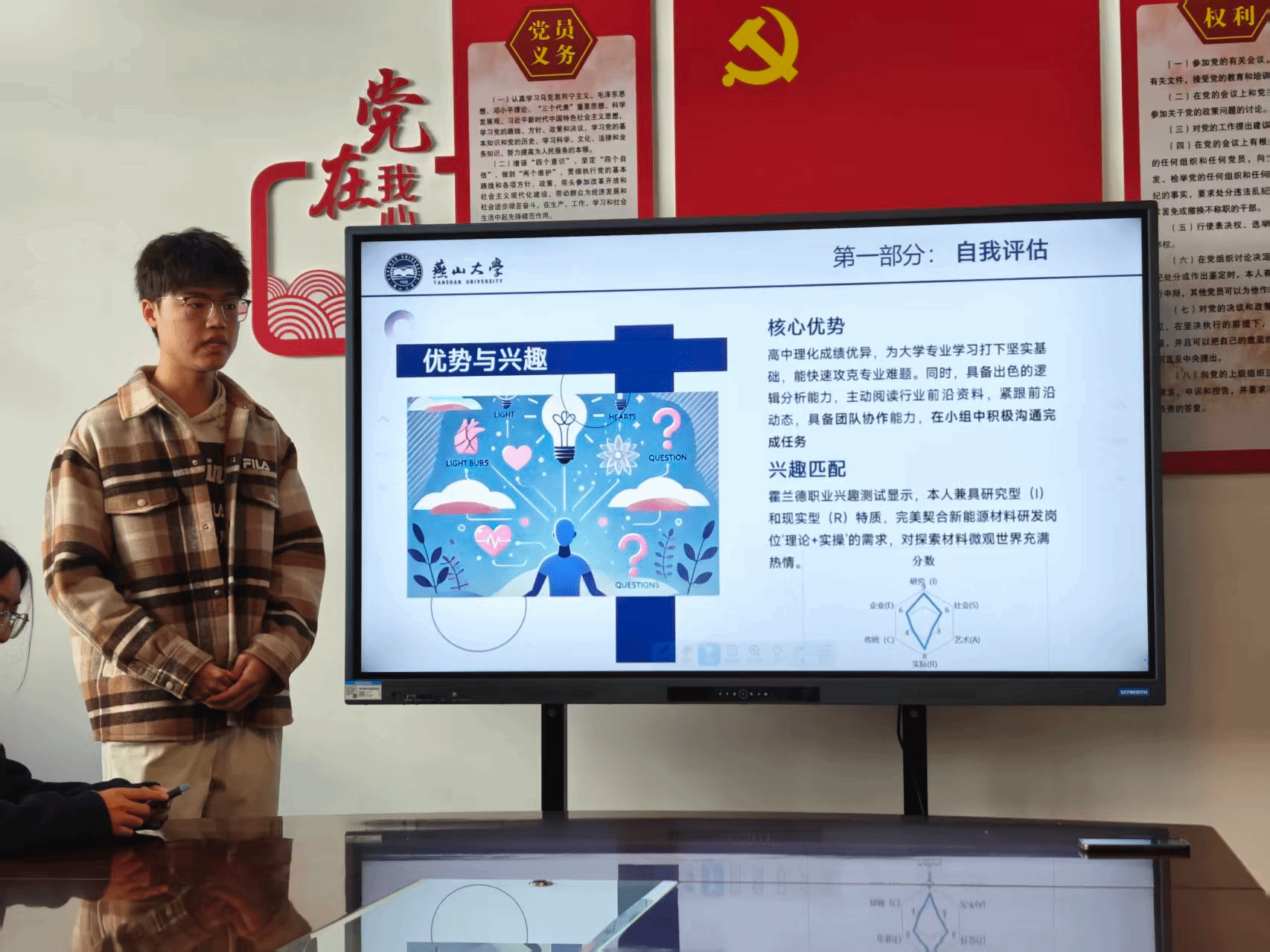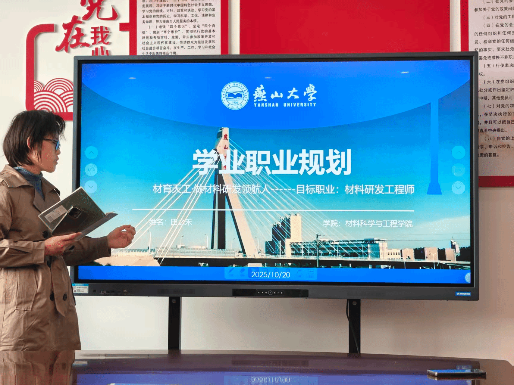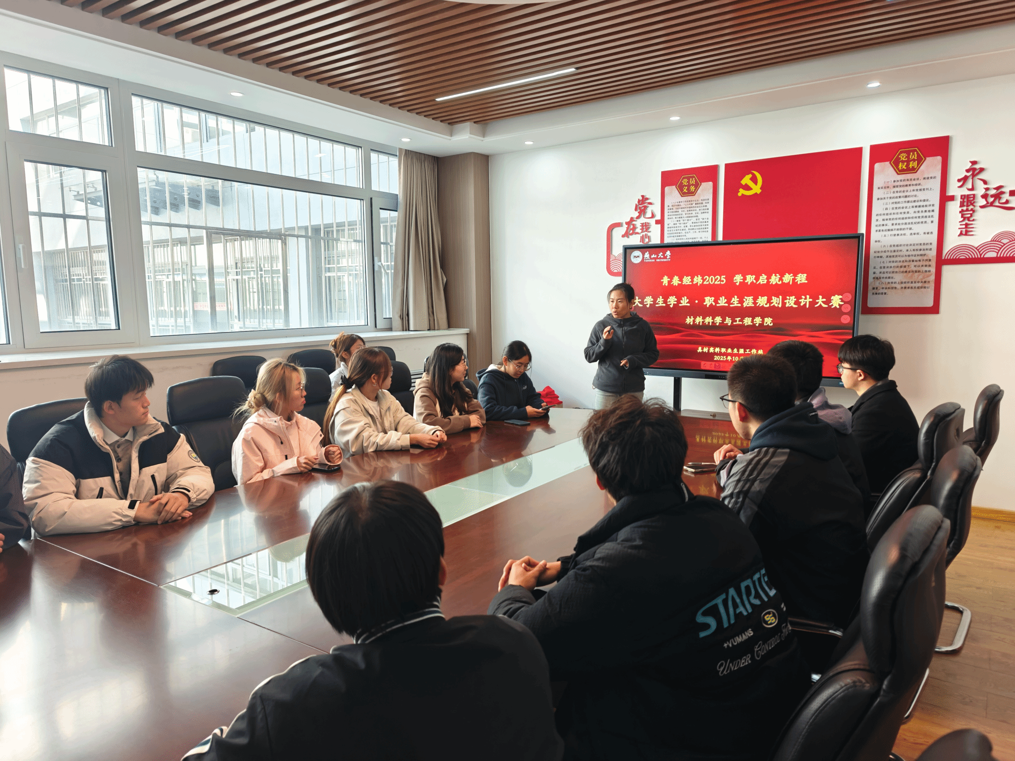 于材料新楼119举办了“青春经纬2025·学职启航新程”大学生学业·职业生涯规划设计大赛。此次大赛由2025级新生参赛,辅导员和23级学生代表担任评委,2025级辅导员冯晶主持。