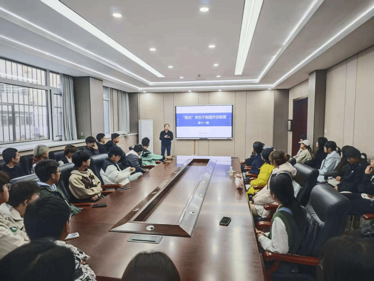 第十一期“微光”学生干部提升训练营在里仁行政楼119会议室正式启动。本次活动由2025级本科辅导员冯晶老师主讲,全体新生班委参加,以学院2025年“躬身实践,逐光而行”社会实践报告会为实践课堂,通过沉浸式学习与交流,助力新生骨干能力提升与使命传承。