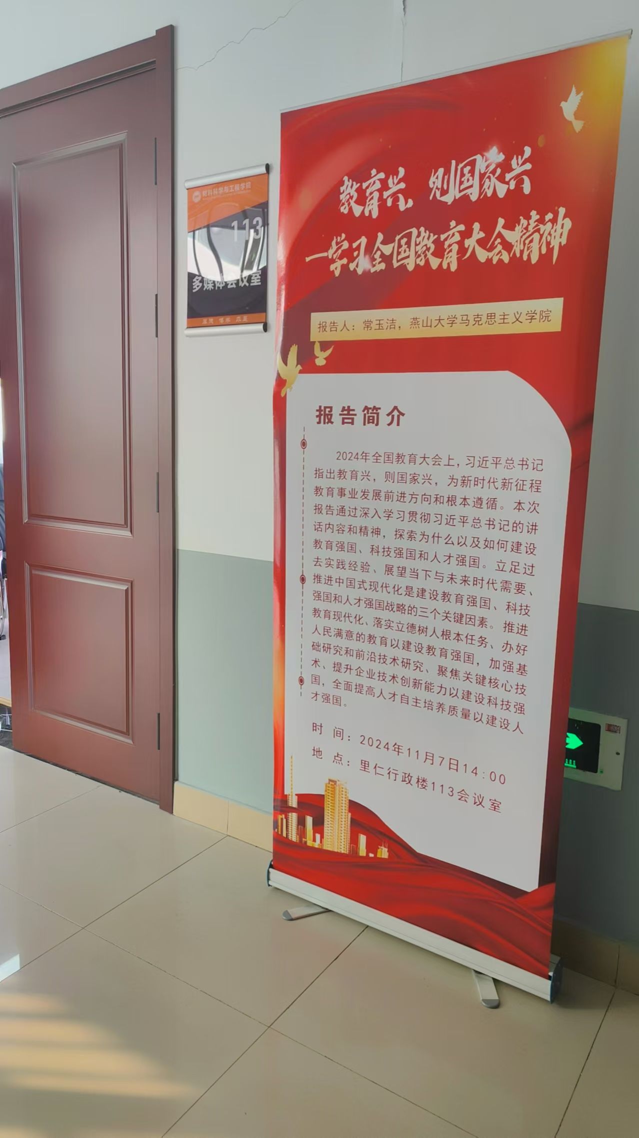 联合马克思主义学院联合举办课程思政与思政课程“双向融合”教研活动,扎实推进主题教育,2024年11月7日马克思主义学院常玉洁老师在里仁会议室113作“教育兴,则国家兴——学习全国教育大会精神”专题讲座。成人在线