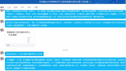 本主题党日以“学知识、比求知,做科学的攀登者”和“学业务、比担当,做事业的开拓者”为主要内容,以学习强国APP中《大国重器》视频和“美国再将33家中国实体列入“实体清单””微信公众号共青团中央文章为载体,所有党员进行了深入仔细的学习,之后,在QQ群中进行了热烈的讨论,并在群内踊跃发言。